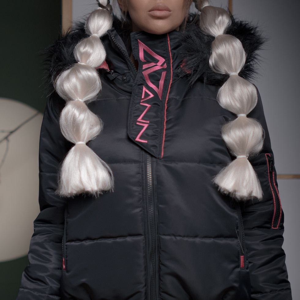 * Детайли : Качулка с еко косъм, Бродерий, Джобове с цип* Цвят : Черен